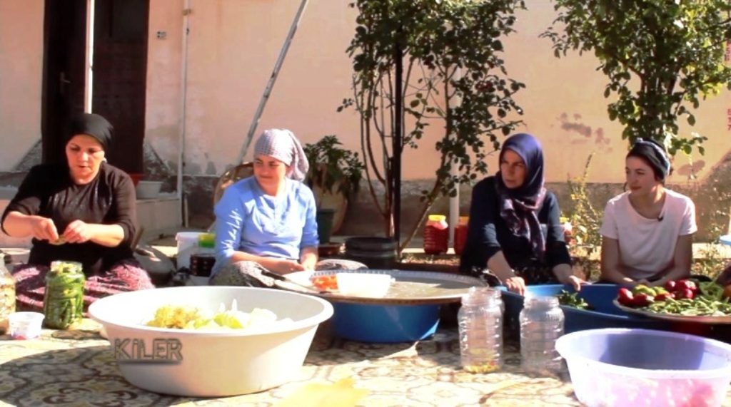 Çubuk turşusu yapımı için hanımlar meyve ve sebzelerin turşusu kurulumunu hem anlattı, hem de görsel olarak tarif etti.