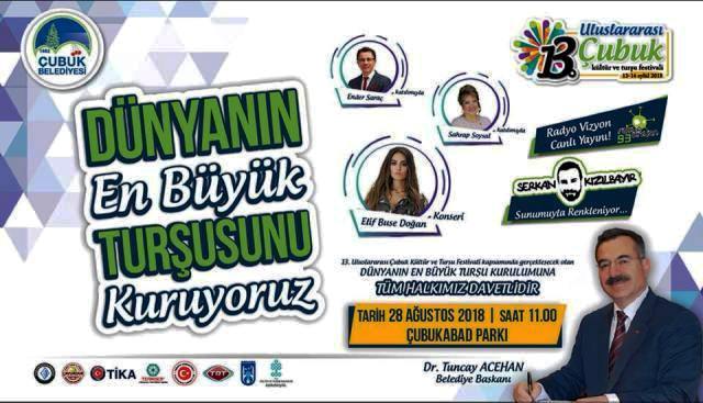 Çubuk’ta 13-16 Eylül tarihleri arasında yapılacak olan 13. Uluslararası Çubuk Turşu ve Kültür Festivali öncesinde dünyanın en büyük turşusu kurulacak.